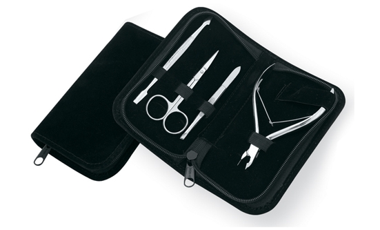 Manicure kit packet in velvet pouch available in many colors.